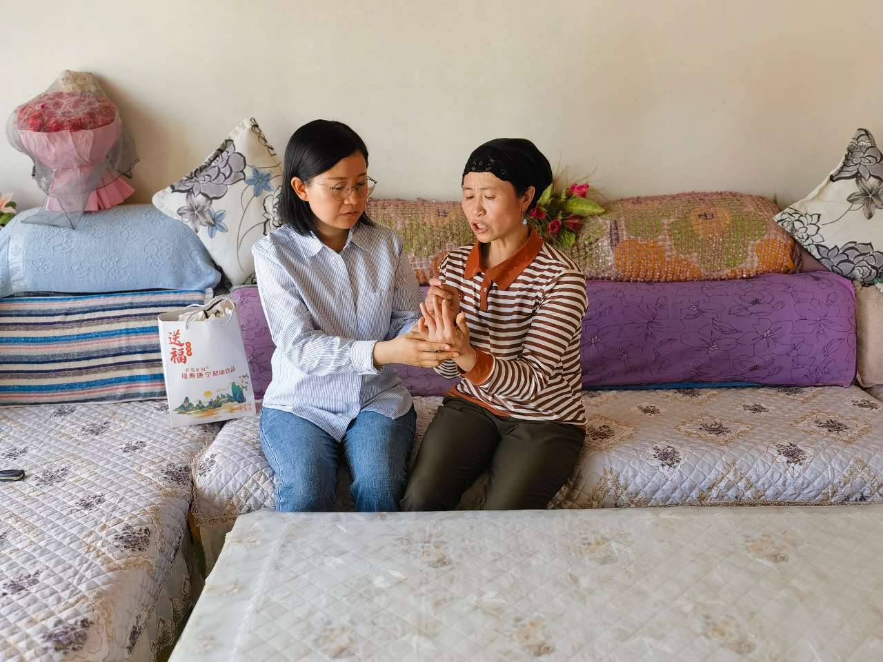 田媛媛(左)在村民馬玉玲家走訪了解情況