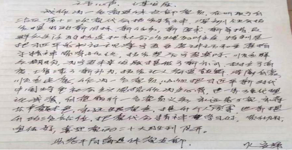 王民鄉(xiāng)離退休支部馬德明寫到:報(bào)告顯現(xiàn)了寧夏全區(qū)上下忠誠(chéng)核心、擁護(hù)核心、跟隨核心、捍衛(wèi)核心的政治態(tài)度和政治擔(dān)當(dāng)。