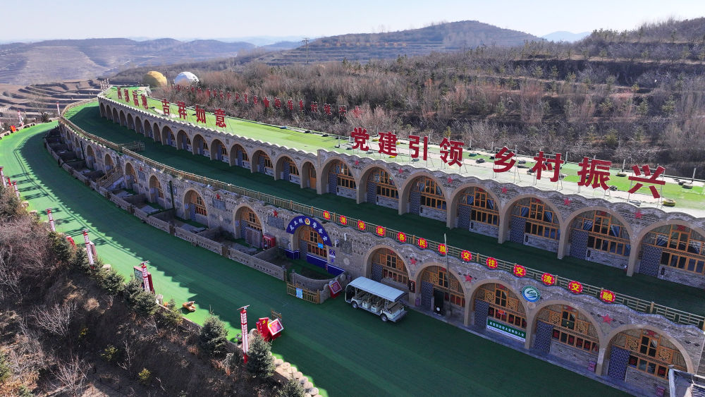 西吉縣結(jié)合鄉(xiāng)村振興發(fā)展規(guī)劃,深度挖掘文旅資源,大力推進(jìn)鄉(xiāng)村旅游轉(zhuǎn)型升級(jí)。圖為西吉縣吉強(qiáng)鎮(zhèn)龍王壩村窯洞賓館(2023年12月1日攝,無(wú)人機(jī)照片)。新華社記者 王鵬 攝